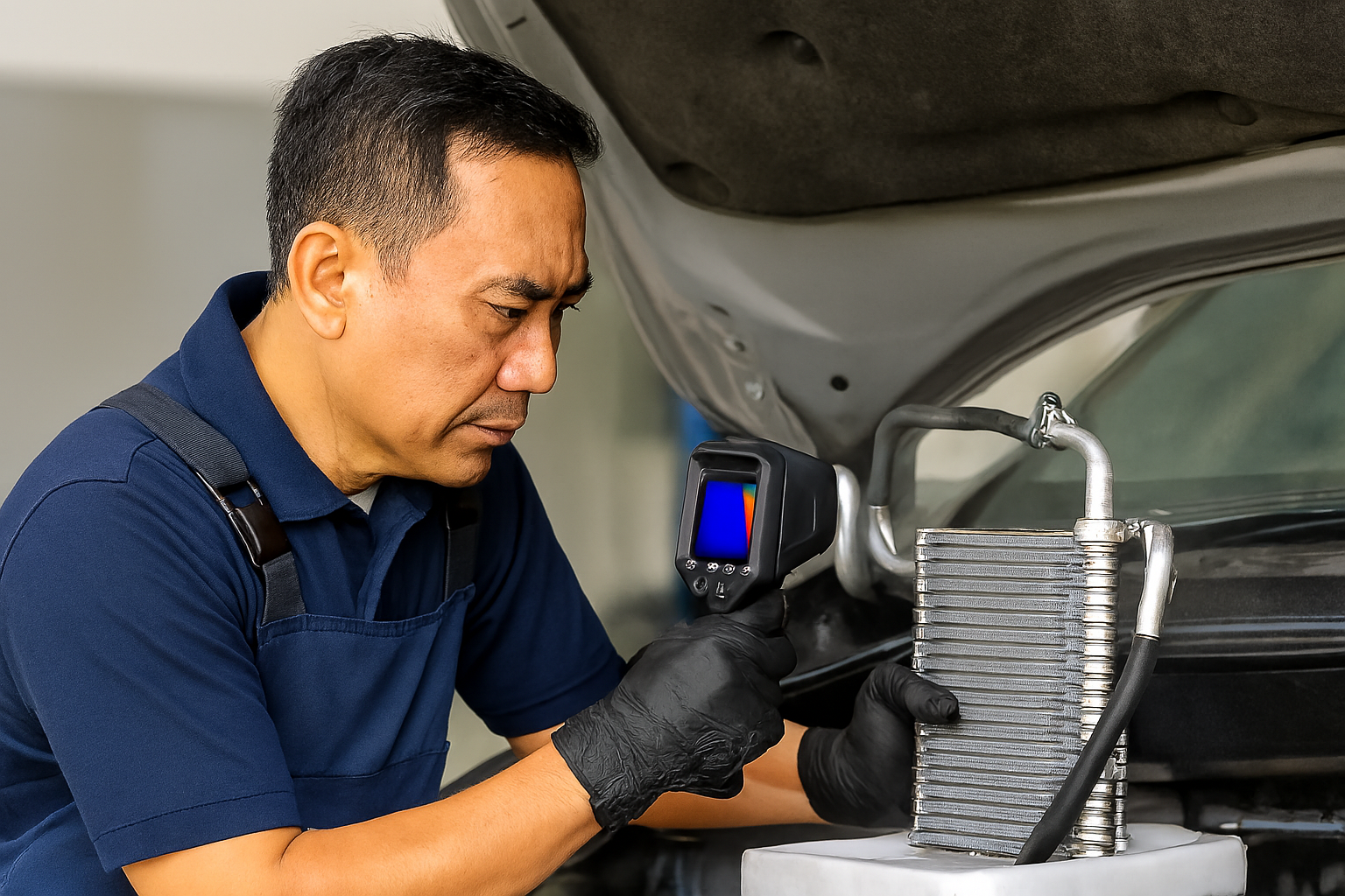 Kebocoran pada sistem AC mobil bisa menyebabkan freon habis, pendinginan tidak maksimal, dan kerusakan komponen jangka panjang. Di Fortune AC Cibubur, kami menggunakan metode profesional seperti menambahkan cairan berpendar ke sistem AC, lalu memeriksa titik kebocoran dengan lampu UV, menekan sistem dengan nitrogen untuk mendeteksi kebocoran halus yang tidak terlihat kasat mata, dan menambal atau mengganti komponen bocor seperti selang, seal, evaporator, atau sambungan pipa.